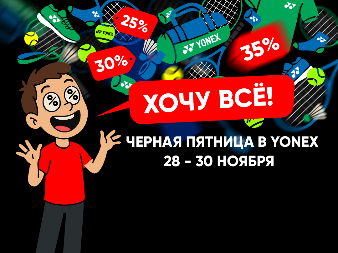 Черная пятница на сайте yonex.by стартует в 00:01 28.11 и продлится до 23:59 30.11