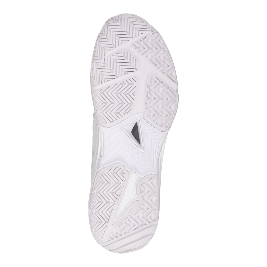 Технология Power Cushion+ бережёт суставы и стопу при приземлении, поглощая удар и превращая энергию в более лёгкий, плавный отскок, чтобы шаги оставались быстрыми и комфортными. Лёгкая поддерживающая конструкция Toe Assist Shape снижает давление на большой палец и позволяет быстрее стартовать к мячу, а Power Graphite Plate в средней части обеспечивает устойчивость на боковых перемещениях — важнейшая особенность для теннисных ритмов.